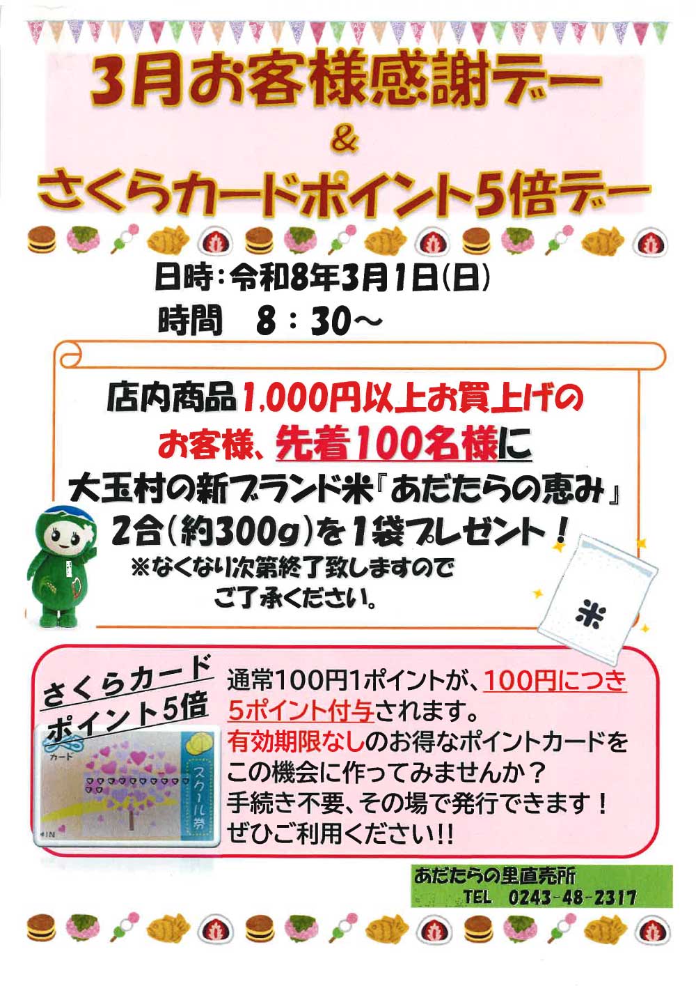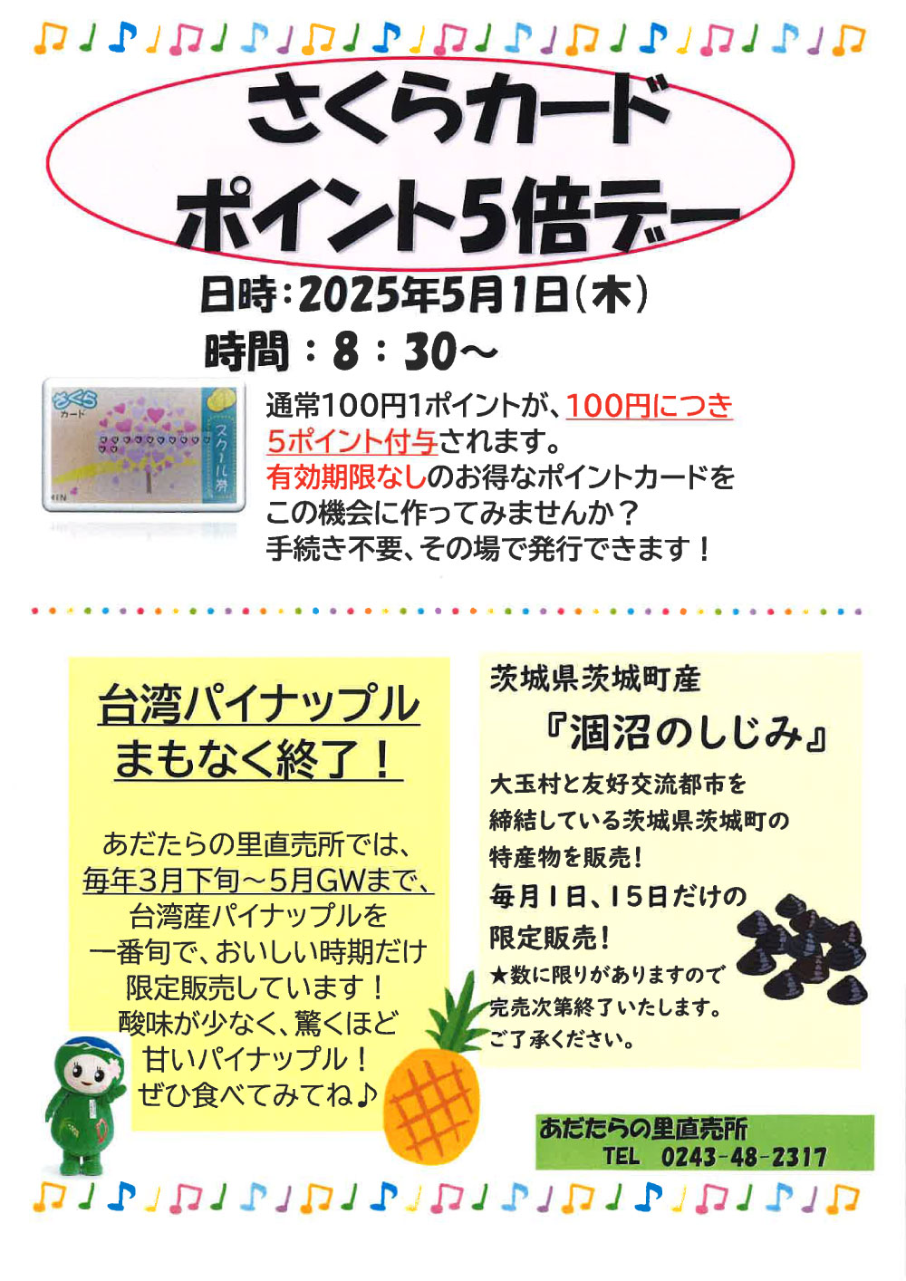 ※お問い合わせはあだたらの里直売所お問合せまたは、Tel:0243-48-2317までお願いします。